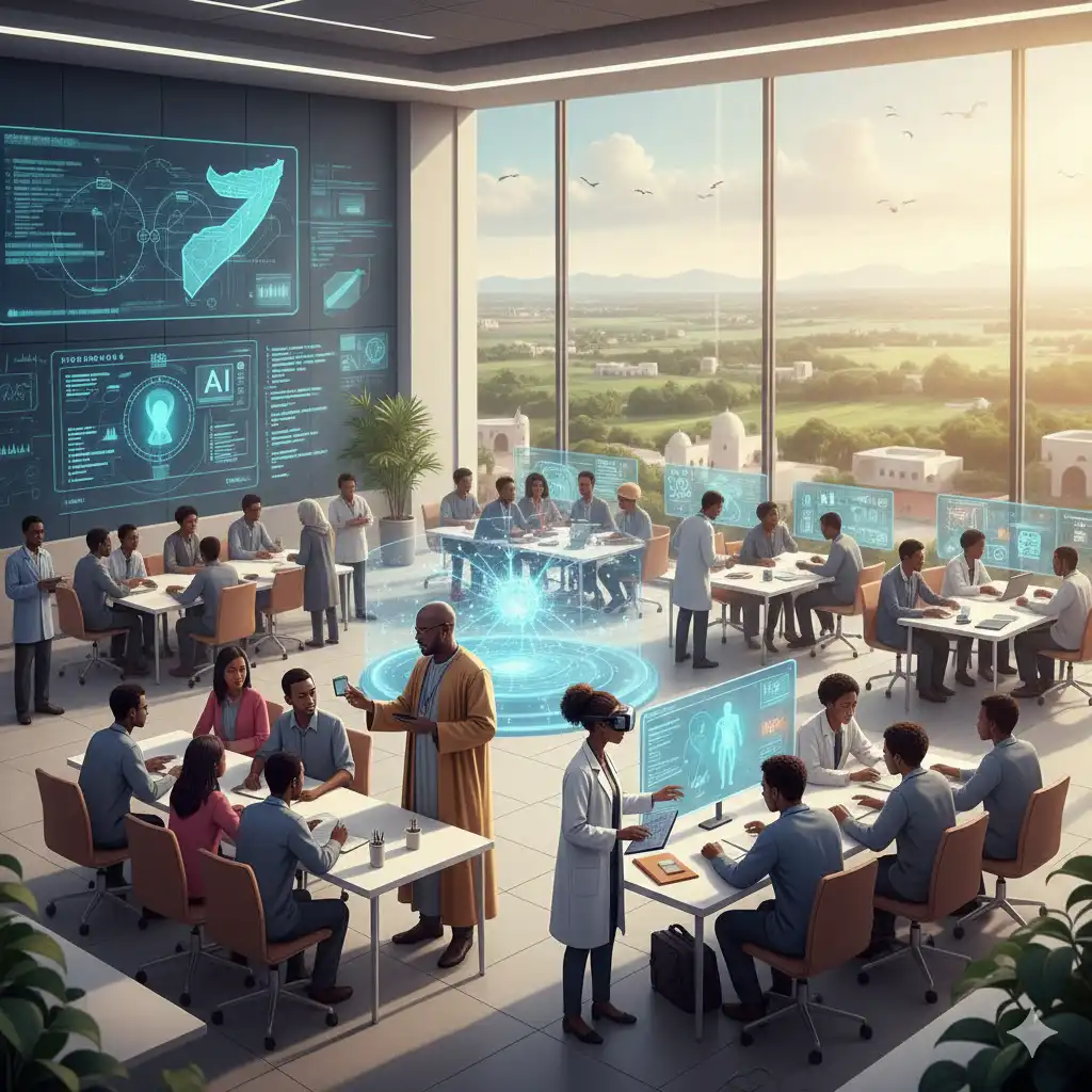 Reflects our belief that lasting progress in AI begins with people. We strive to cultivate a generation of AI-literate citizens, researchers, and professionals who can lead Somalia’s digital transformation. Through degree programs, professional training, and continuous learning opportunities, we are building a strong talent pipeline for academia, industry, and government. The Institute integrates AI literacy into the wider education system, offers capacity-building for faculty and policymakers, and creates mentorship and fellowship programs to empower the next generation of innovators and change-makers.